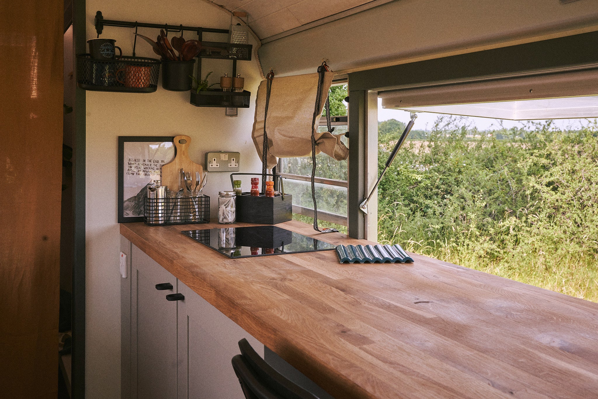 Little Firs bietet ein Doppelbett und zwei Einzelstockbetten darüber. Ein maßgeschneidertes Waschhaus ist nur wenige Schritte vom Bus entfernt – hier kannst du unter einer heißen Regen-Dusche entspannen, mit Kompost-Toilette und Waschbecken.