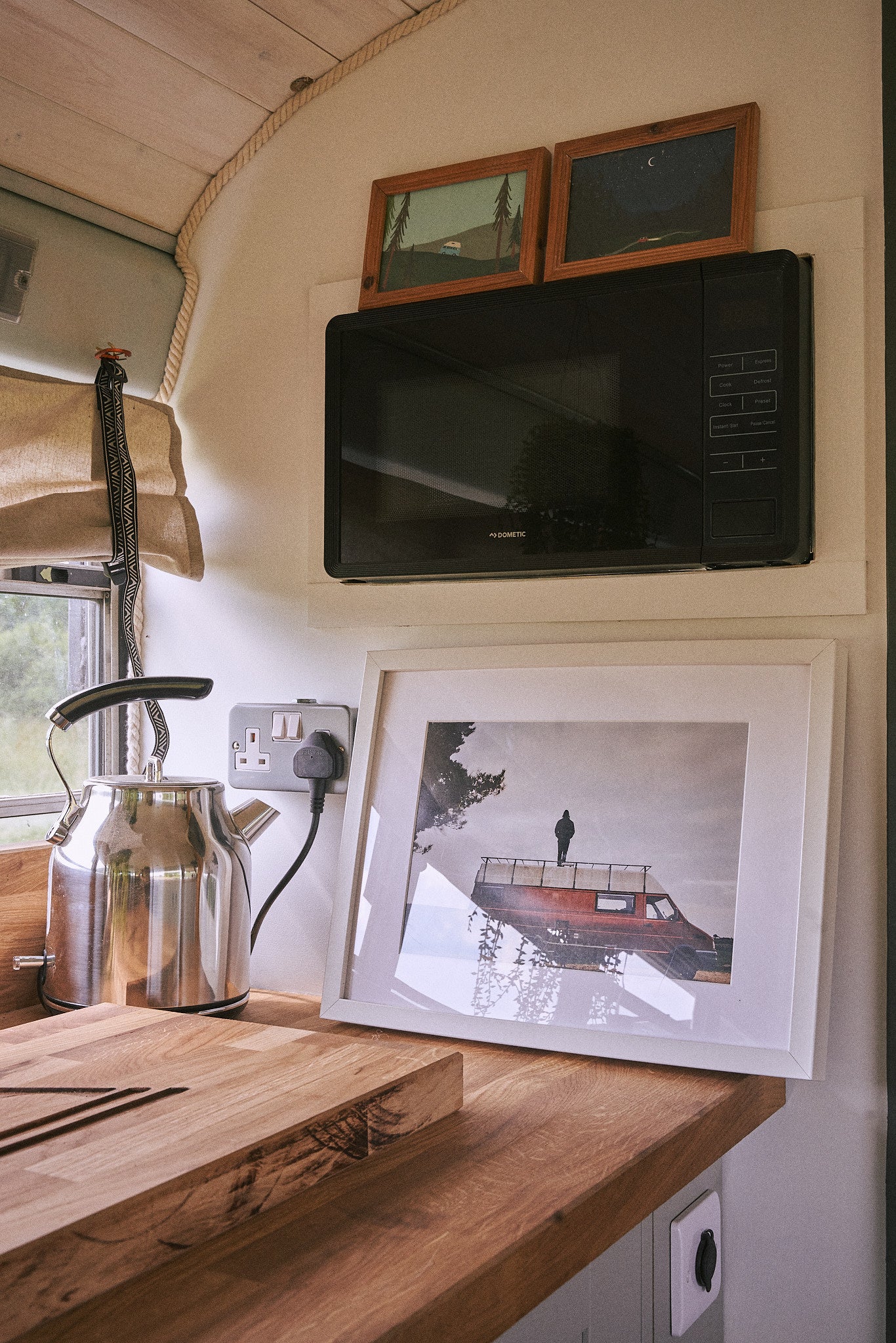 There are two compressor fridges on board, which are the leading technology for lower energy consumption. The induction hob is designed to work without overstraining the bus’ electrics or mains power, working off the solar and battery set up wherever possible.